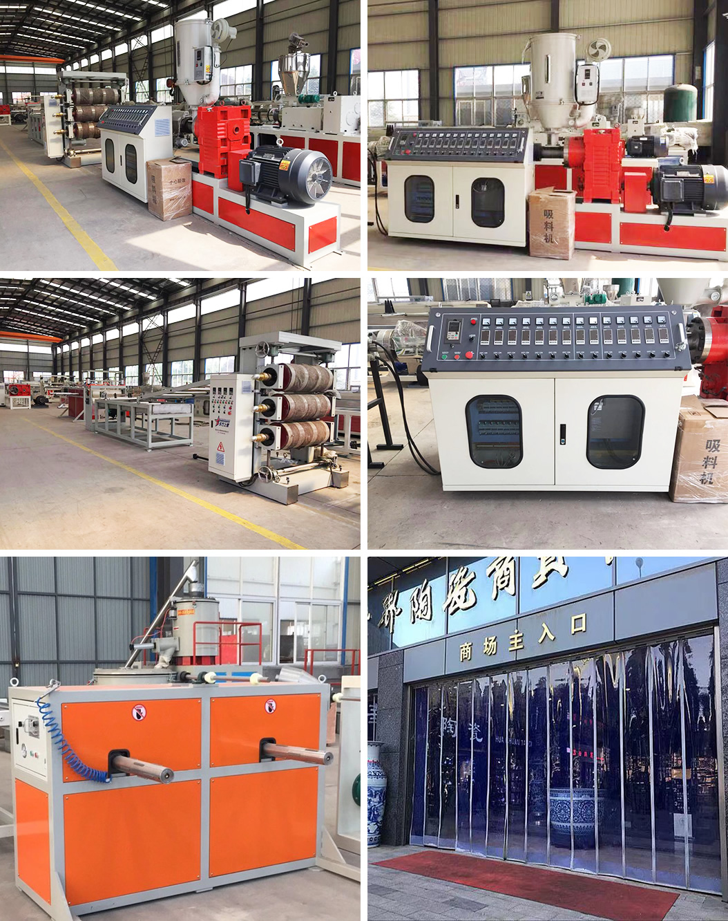 PVC透明軟門簾生產(chǎn)線:可生產(chǎn)寬度200-600毫米、厚度0.8-3毫米的PVC透明塑料片材。該設(shè)備采SJ90或SJ-120單螺桿擠出機(jī)、T型彈性??诳烧{(diào)模具、立式或斜45度三輥壓光機(jī)、三合一水溫機(jī)、不銹鋼冷卻托架裝并裝有寬幅可調(diào)切邊刀、橡膠輥牽引機(jī)、雙工位氣漲軸收卷機(jī)。所生產(chǎn)的片材表面光澤,通透無暇,柔軟,無裂縫、無異味、無氣泡、柔軟耐寒、耐磨、耐酸堿、耐腐蝕。