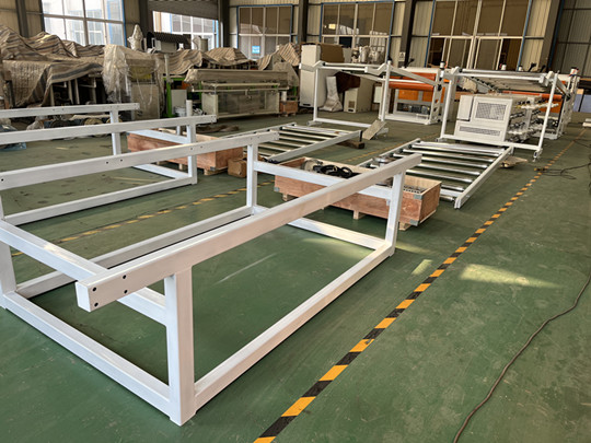 客戶在我公司訂購了兩套pvc片材設(shè)備,客戶使用的原料是軟pvc,產(chǎn)品的寬度是1000mm, 厚度是6mm。