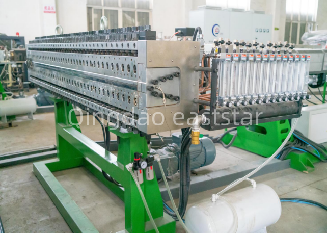 PP中空格子板生產(chǎn)線(xiàn)的模具系統(tǒng)采用優(yōu)質(zhì)模具鋼制造,模具開(kāi)口寬度2200mm,可生產(chǎn)2-6mm厚度的中空格子板。模具配備11區(qū)加熱系統(tǒng),加熱功率4KW/區(qū),采用內(nèi)加熱方式確保溫度均勻。真空定型冷卻平臺(tái)采用二段真空冷卻定型加一段冷卻定型的組合設(shè)計(jì),配備15KW真空泵,確保板材成型穩(wěn)定。這些專(zhuān)業(yè)配置保障了中空格子板生產(chǎn)線(xiàn)生產(chǎn)的產(chǎn)品具有均勻的格子結(jié)構(gòu)和穩(wěn)定的尺寸精度。