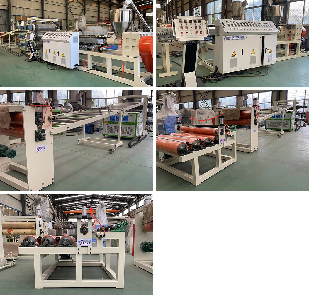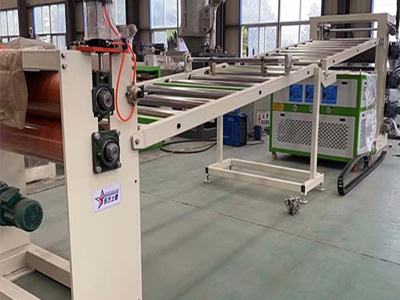 PE化學發(fā)泡片生產(chǎn)線:該設備采用120-30比1單螺桿擠出機、液壓自動換網(wǎng)器、可調(diào)模具、立式三輥壓光機、三合一輥筒恒溫機、不銹鋼冷卻托架裝并裝靜電處理裝置及有寬幅可調(diào)的合金切邊刀、橡膠輥牽引機、雙工位氣漲軸收卷機。全線采用:日本歐姆龍智能溫控儀、施耐德低壓電器、國內(nèi)馳名品牌變頻調(diào)速器。